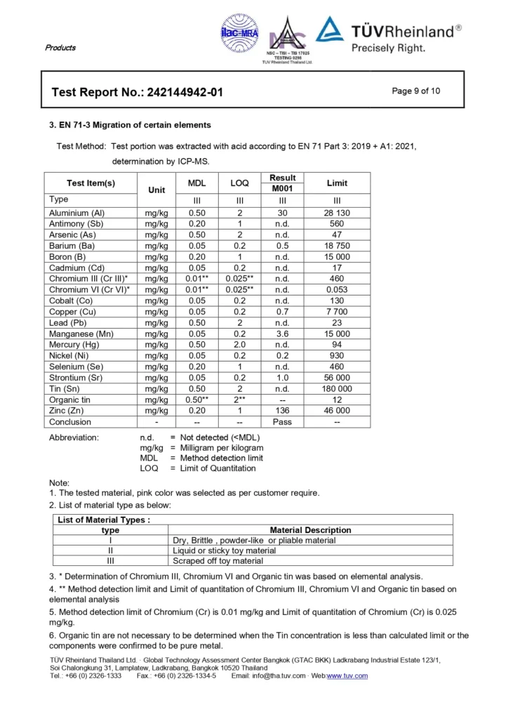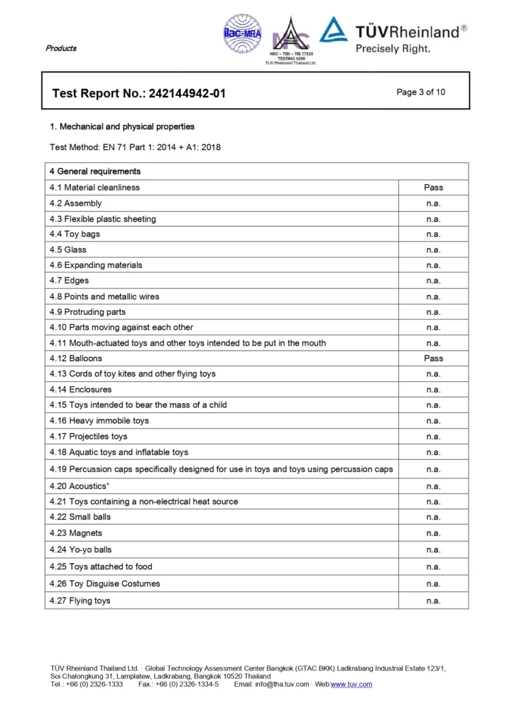 Certified safety and non-toxic materials.
